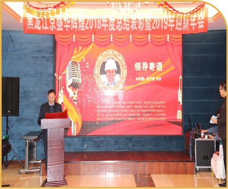 2019年1月11日黑龍江京盛華環保科技有限公司年會慶典下于當日下午1:00在黑龍江大慶市瑞麟灣酒店拉開帷幕;公司領導、全體員工、北京萬邦達公司代表一同出席并見證此次盛會。